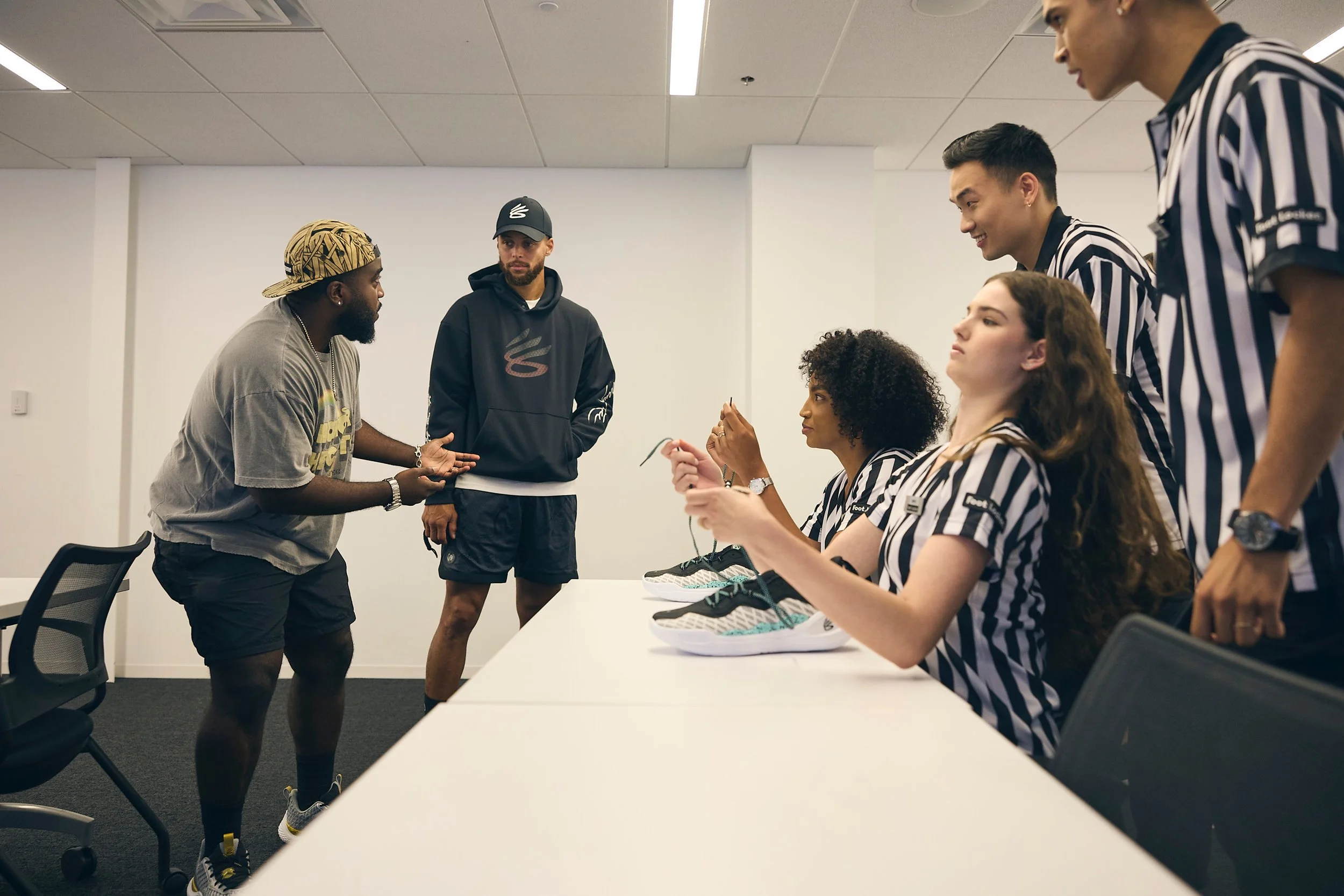 Byron Stewart directing Stephen Curry at Foot Locker.
